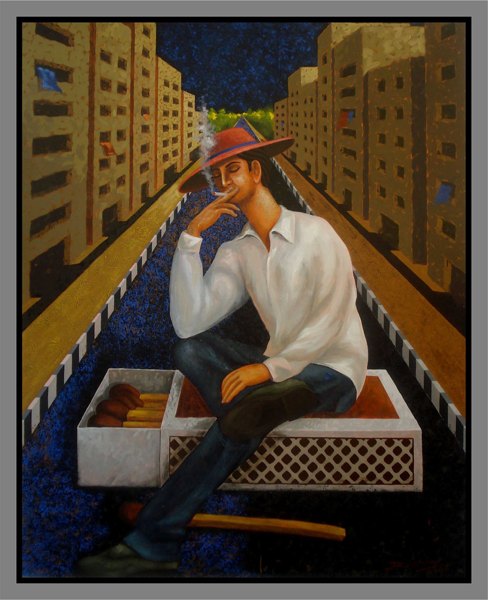 Rajesh Chand | Enjoy on Hot Box | 48x60 | Acrylic on Canvas